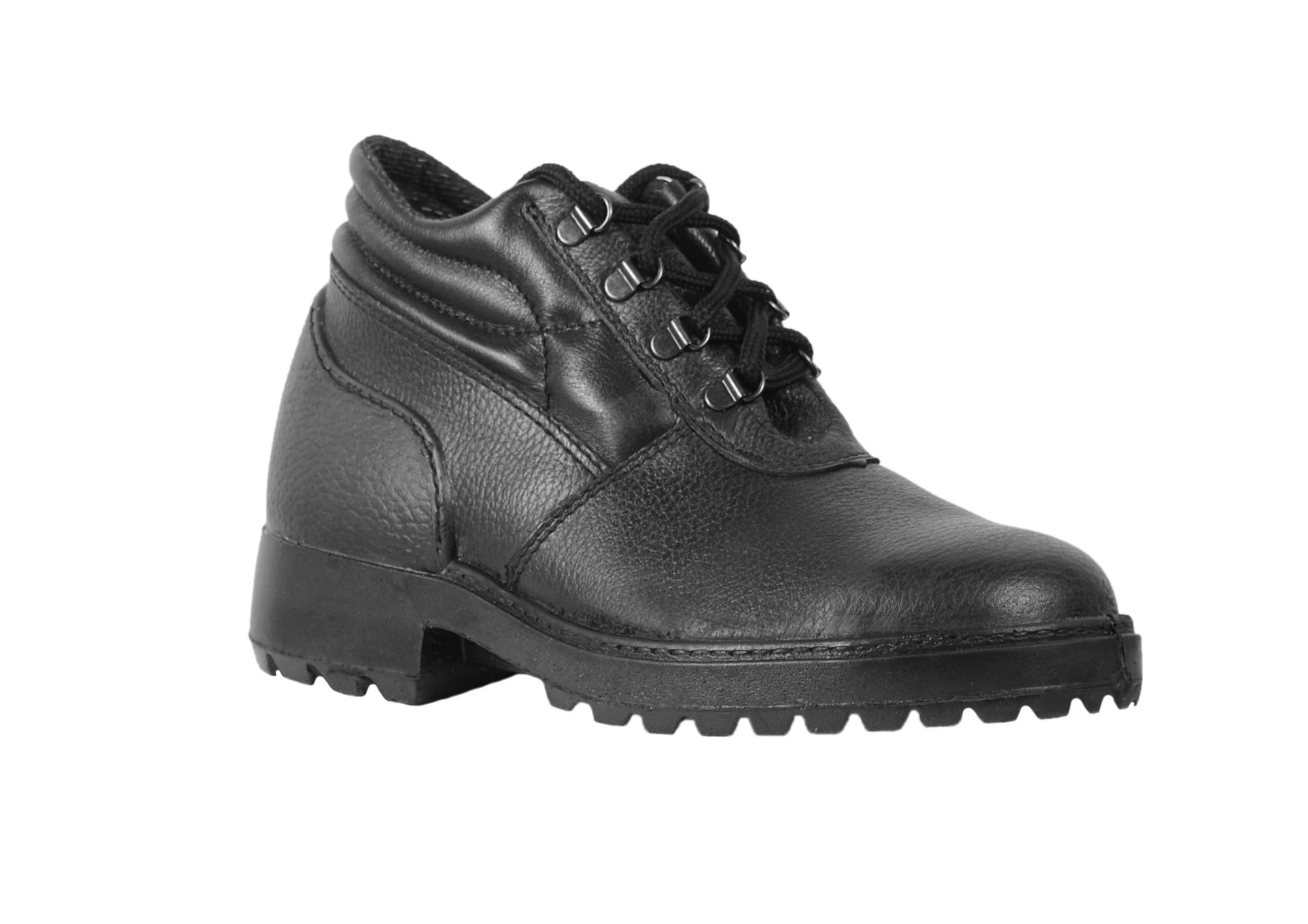 Ботинки рабочие - конструкция заготовки состоит из двух частей: союзки и берцев. В передней части ботинок имеется 4 пары металлических крючков для шнурков. В носочной части установлен подносок из термопласта, в пяточной части - задник из термопласта. Метод крепления подошвы – строчечно-литьевой.