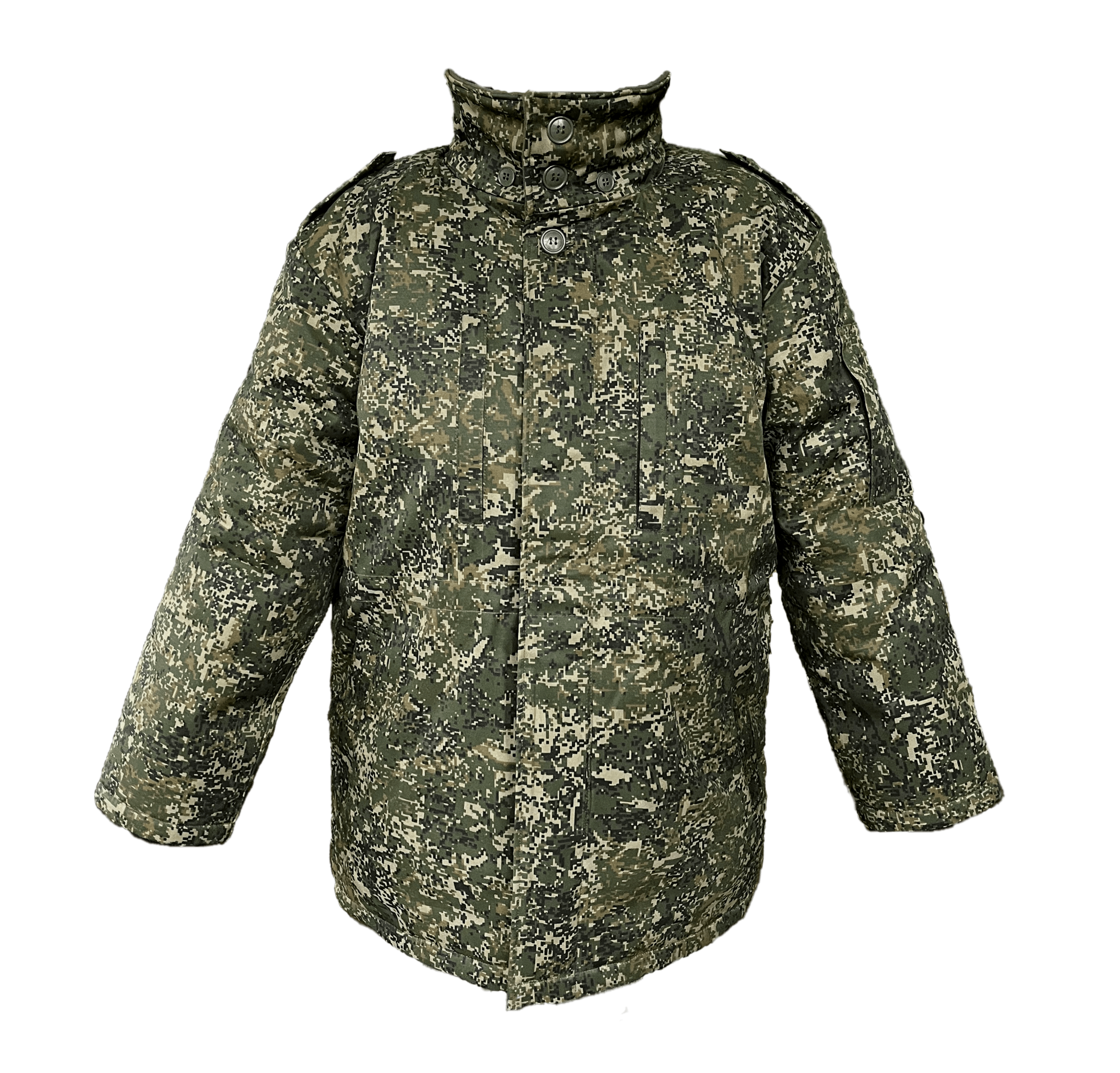 Утеплитель куртки съемный, с напульсниками по низу рукавов. Съемный утеплитель стеганый с утепляющей прокладкой из ватина и спанбела, с подкладкой до низа. На подкладке левой части расположен внутренний накладной карман с клапаном, застегивающимся на петлю и пуговицу, карман с двумя входами.